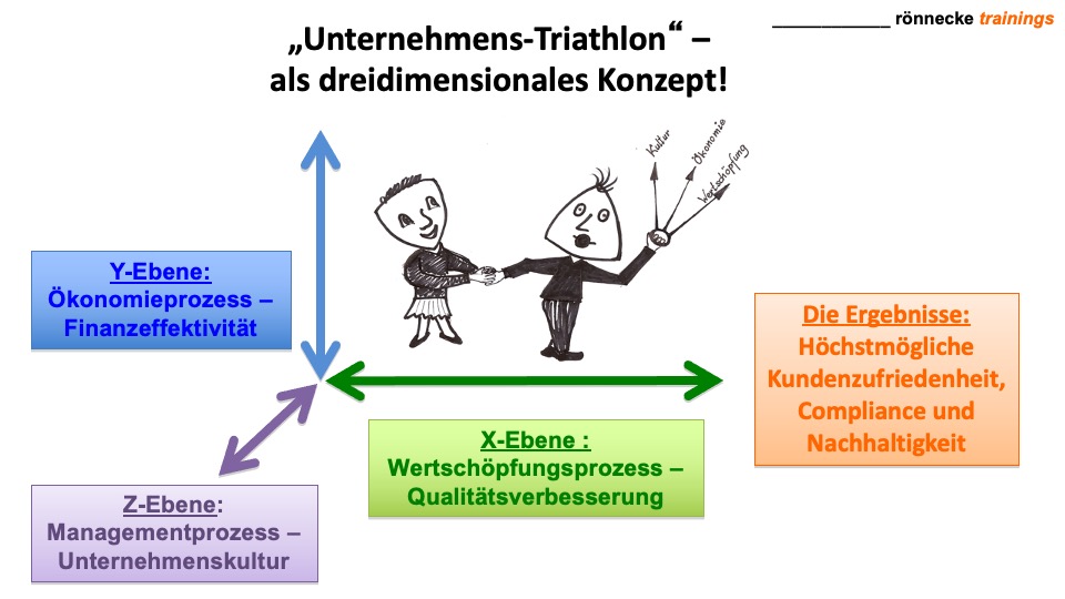 Individuelle Arbeitsmethoden und eine ausgewogene erfolgskritische Mitarbeiterbeteiligung an gemeinsamen Veränderungsprojekten sorgen für eine nachhaltige Wirkung der Triathlon-Maßnahmen in Ihrem Hause. Gemeinsam realisierte Maßnahmen wirken über den Projektabschluss hinaus.