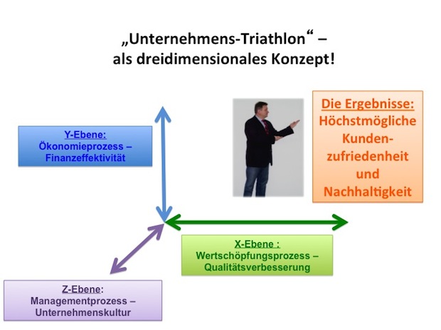 In Anlehnung an den Spitzensport bieten wir die Methodik-Didaktik für komplexe unternehmerische Handlungen - den „Unternehmens-Triathlon“.